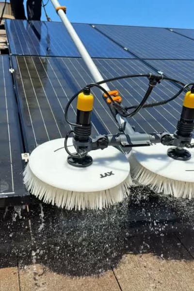 We use ionized water and dual rotating brushes to gently remove dust, pollen, and debris without damaging panels. Working directly on the roof ensures every panel, corner, and hard-to-reach spot is spotless, while also letting us check for nests, cracks, or buildup. Our hands-on approach delivers better results and peak efficiency.